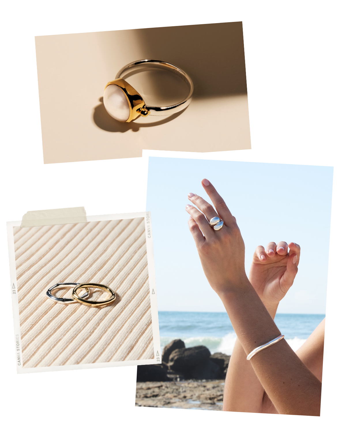 Although there are no hard and fast rules for extra bridal rings, I advise adding one ring (or a stack) on your right hand so you leave the left for the important wedding ring exchange. I love the Dune Ring and Pool of Tears Ring for their understated elegance and, of course, bridal pearl rings for their timeless beauty.