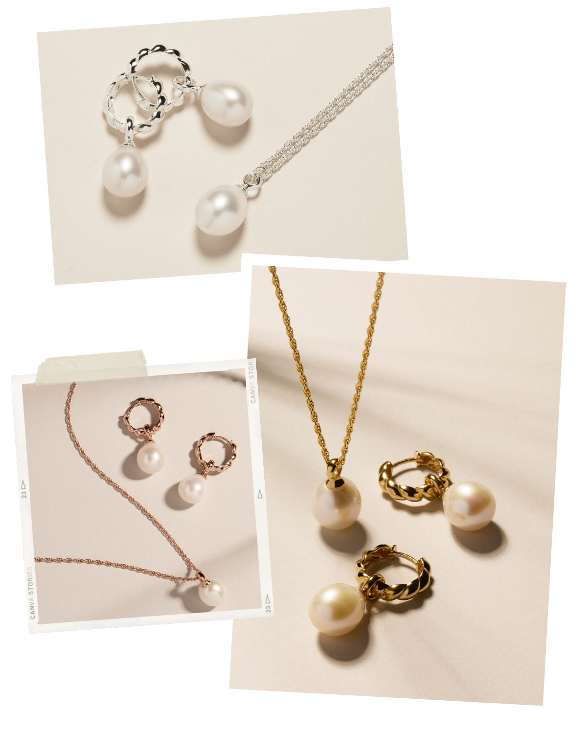 Sterling Silver, Yellow Gold, Rose Gold, Pearl |
