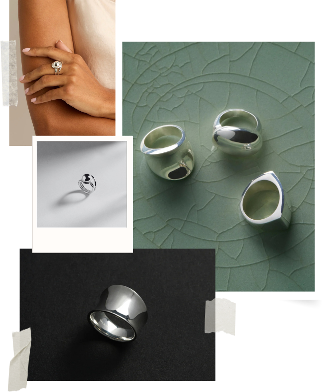 Discover the The Artiste Ring, Muse Ring or the Revival Eight-Band Silver Ring for elegant simplicity.
