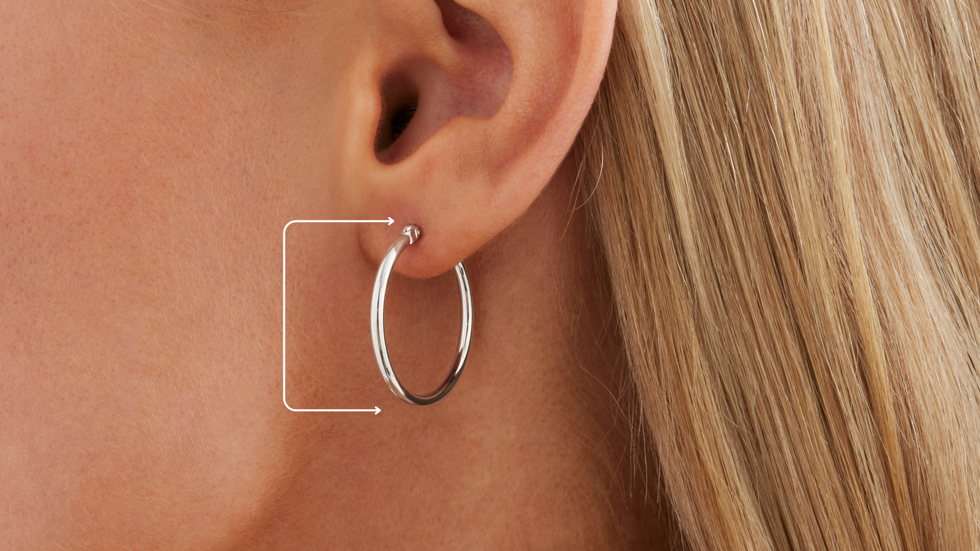 Hoops earrings come in a range of sizes. Unlike huggies, hoops extend out from the ear, creating a larger and more noticeable circle. Our hoop earrings range from 15-40mm.